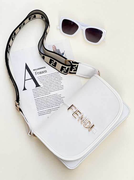 کیف چرم فندی با سه رنگ سفید-مشکی-کرم