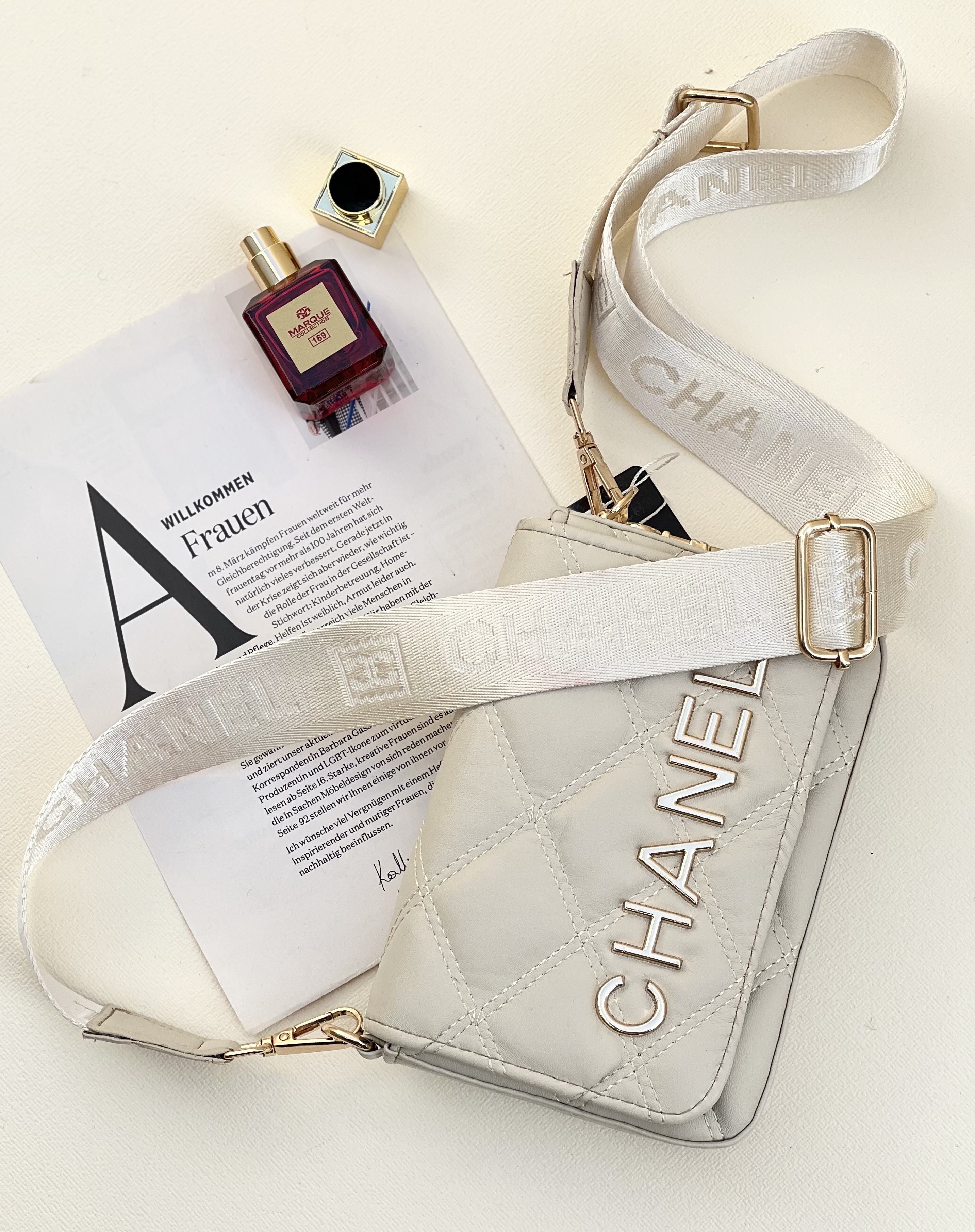 کیف چنل وارداتی✨ یه اسکارف قابل جدا شدن داره✨ بند اسپرت قابل تنظیم داره ✨ داخل و پشت کیف جای کارت دارع✨ یراق آلات رنگ ثابت ✨ جنس : چرم مصنوعی ابعاد : ۱۲ *۱۸ رنگبندی : کرم
